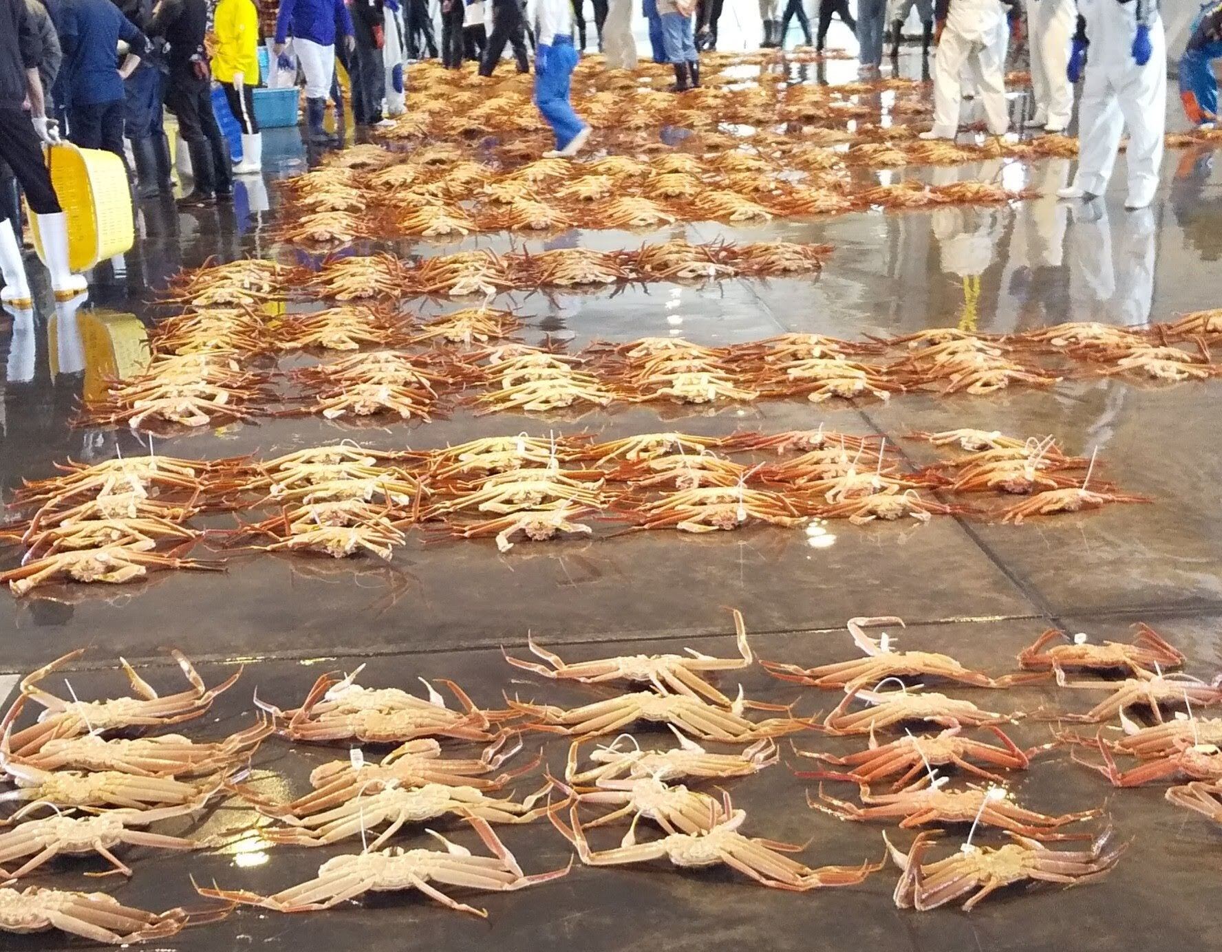 カニは重さ、身の詰まり具合で品質の評価をしております。